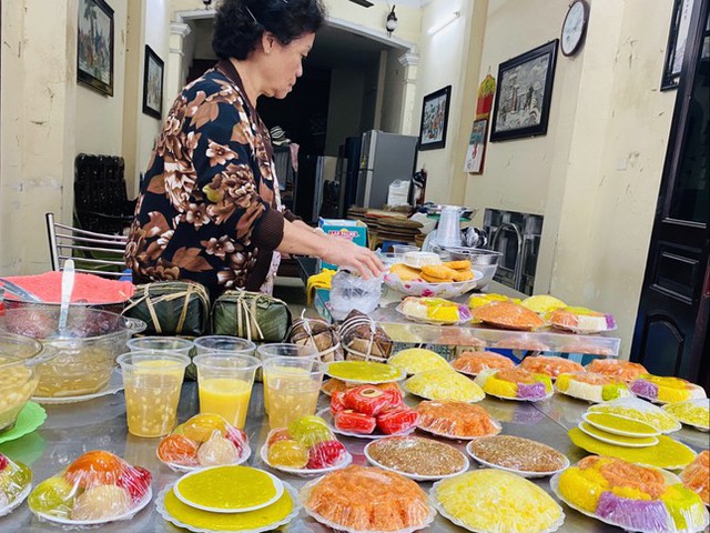 Theo chủ quán, các món ngũ sắc được nhiều chị em chọn lựa hơn cả, chúng không chỉ đẹp mắt mà còn mang ý nghĩa phong thuỷ, biểu trưng cho ngũ hành. Bên cạnh đó, dâng cúng các món ngọt cũng biểu thị mong muốn của gia chủ về một năm mới ngọt ngào và hạnh phúc.